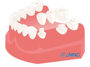 両隣の歯を支えにして、橋をかけるように歯を作る方法(両隣を削ることが多い)